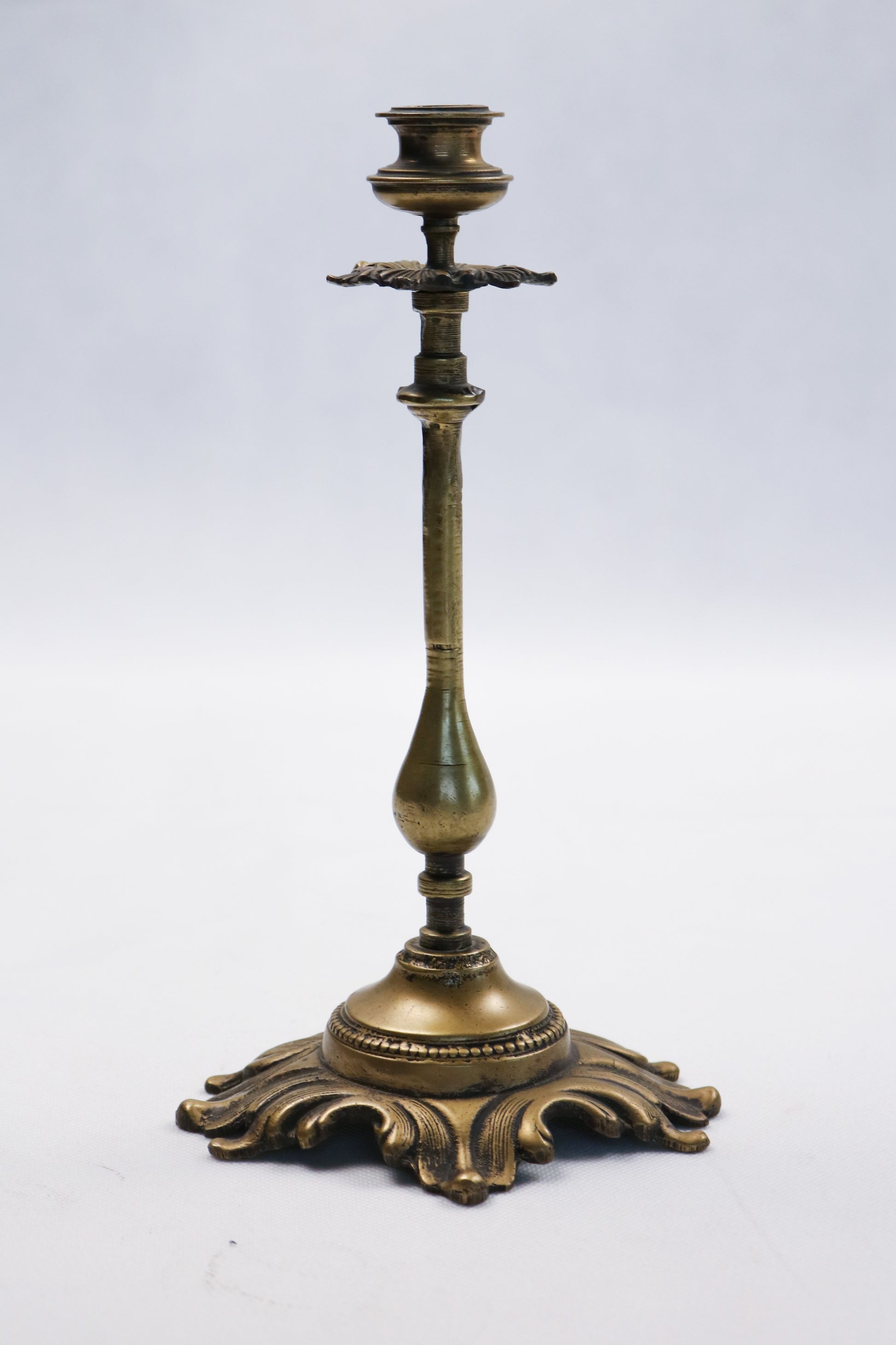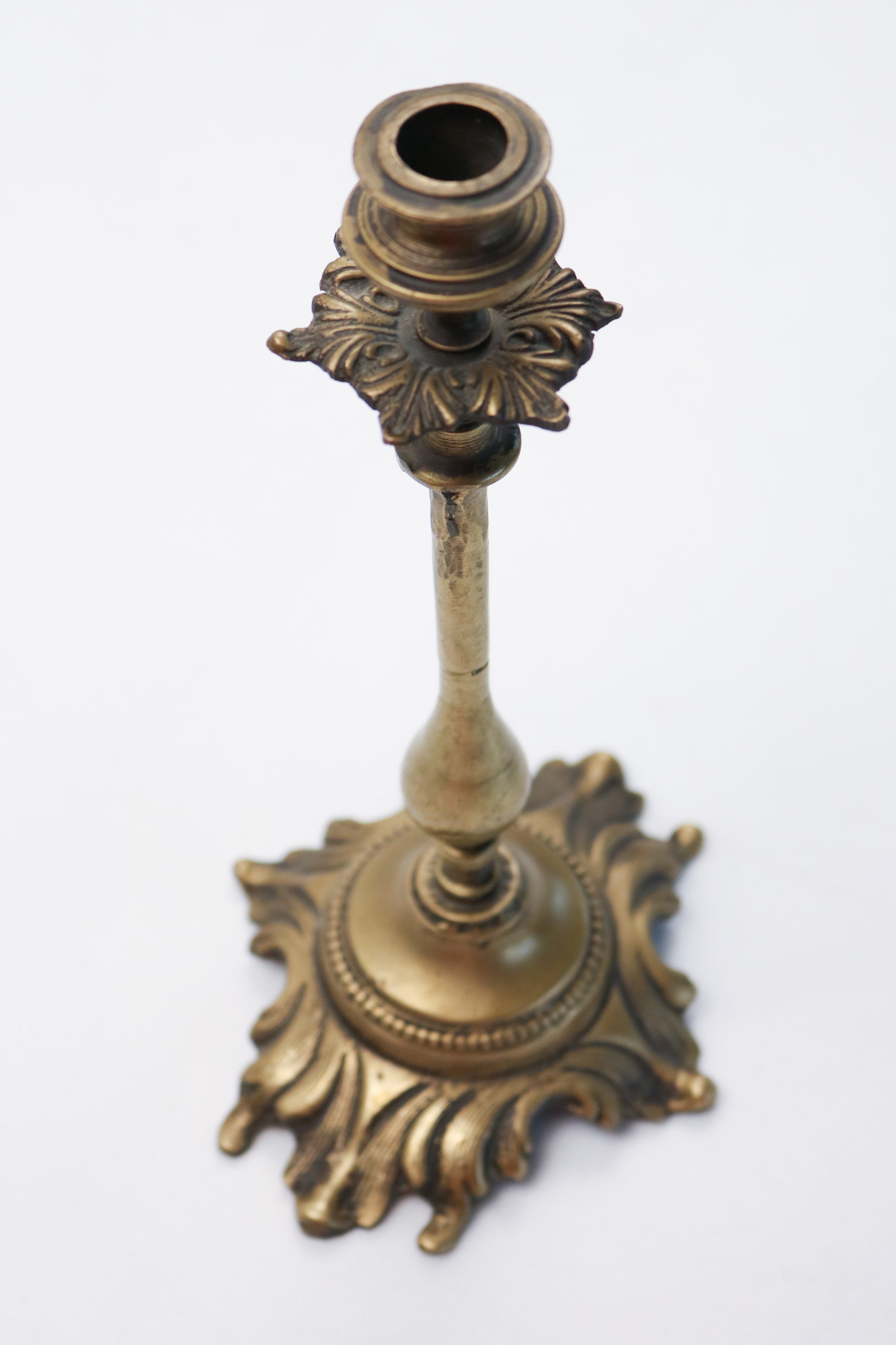 A refined copper candle holder designed with a slender, elongated silhouette and rich ornamental details. Crafted to hold taper candles, this piece brings a sense of height, balance, and timeless elegance to any setting.